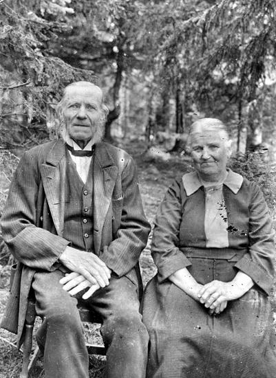 Äldre par sittande utomhus (Torparen Erik Vestin, Bräcke, f. 1853)