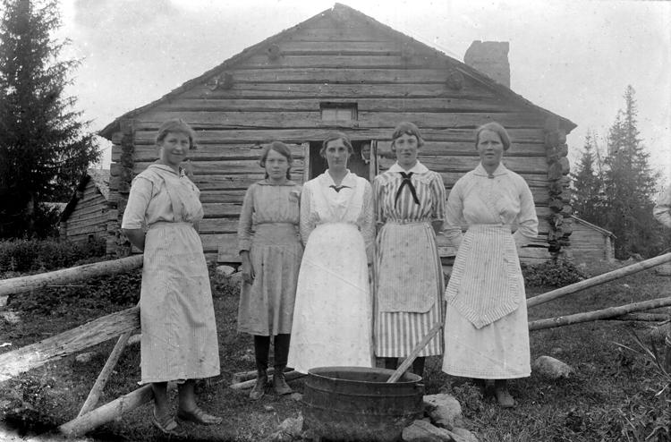 Bräcke fäbodar: Agnes Vestman, Gunhild Lundvall, Karin Byström, Anna Vestin?, Nordlund, Björkåbäck?
