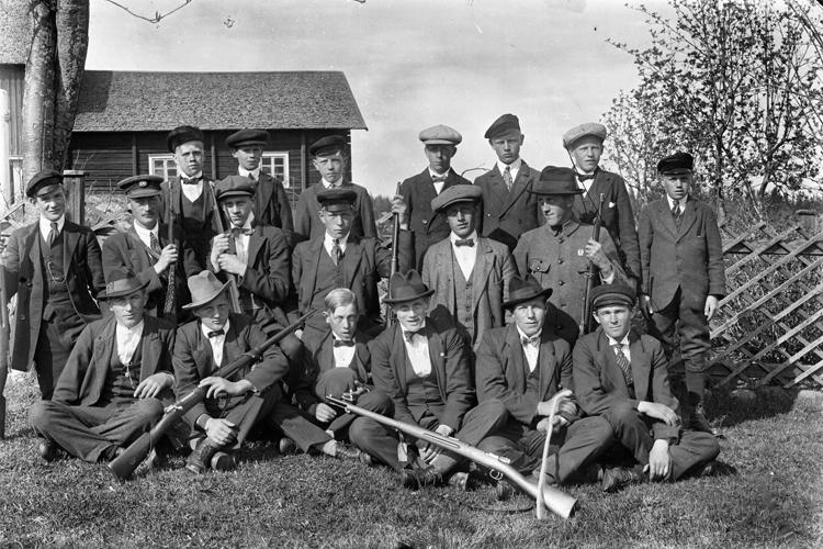 Gruppbild av medlemmar i Näske Skytteförening, bl.a. Johan Vikner, Ragnar Olofsson